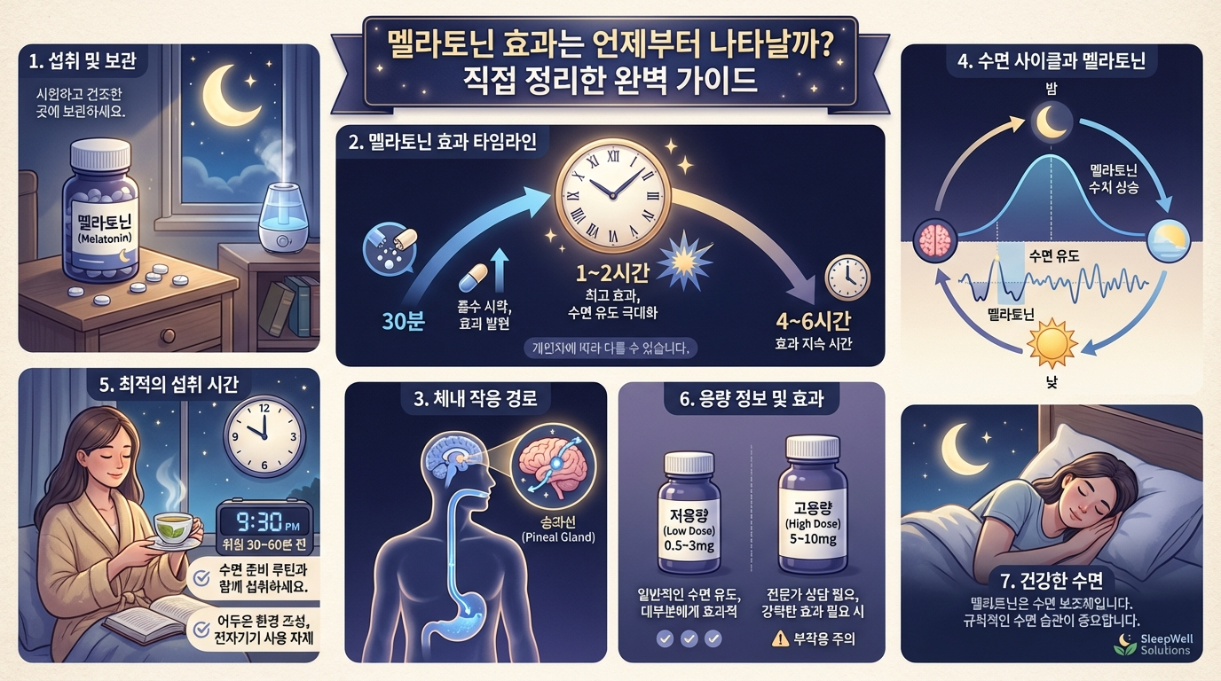 멜라토닌은 주로 수면 입면 시간 단축과 일주기 리듬 조절에 효과적입니다. 깊은 수면(서파 수면) 비율을 직접 늘린다는 강력한 근거는 아직 부족합니다. 수면의 질 전반을 높이려면 생활 습관 개선이 병행되어야 합니다.