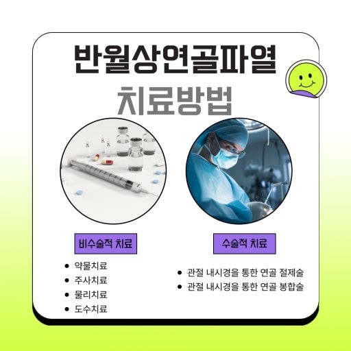 | 관절경 수술 (Arthroscopy) | 찢어진 부위를 관절 내시경으로 확인하고, 봉합하거나 제거 |
