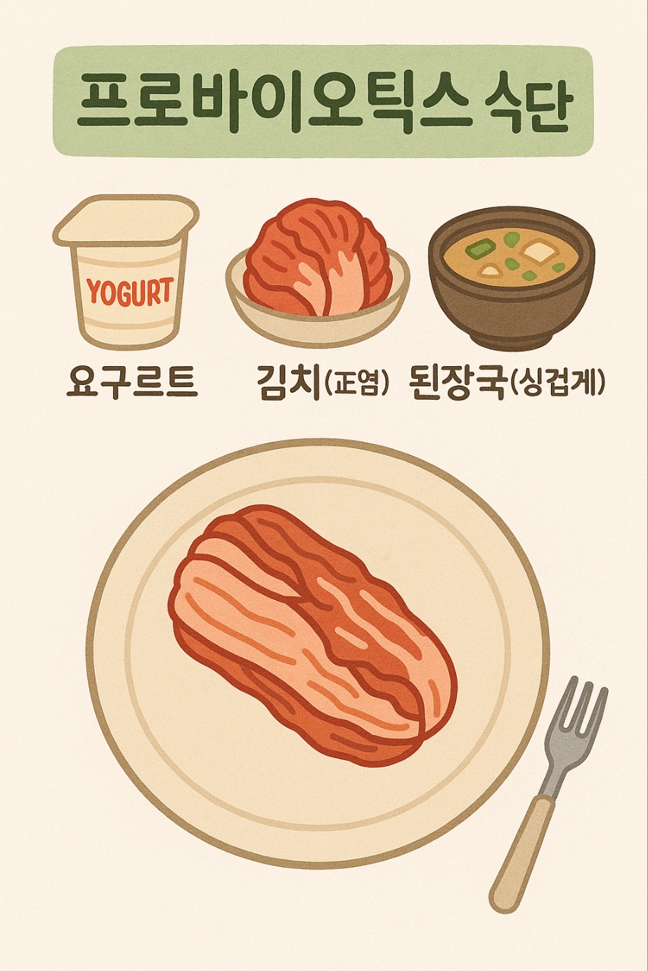 | 발효식품 | 요구르트, 저염 김치 | 유익균, 염증 억제 |