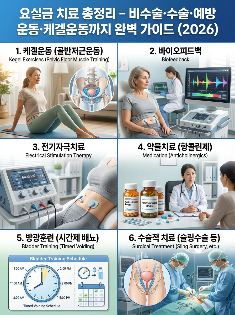 ① 경증 요실금은 케겔운동·바이오피드백·약물 등 비수술 치료로 50~75% 개선 가능