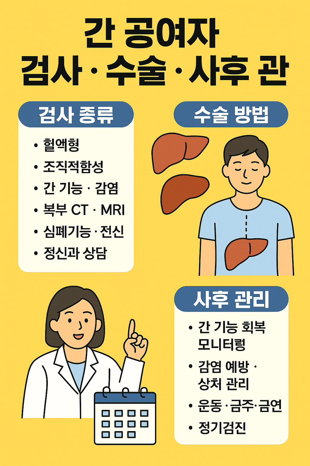 간 공여자 – 조건·검사·수술·회복·후유증·지원 제도 완벽 가이드