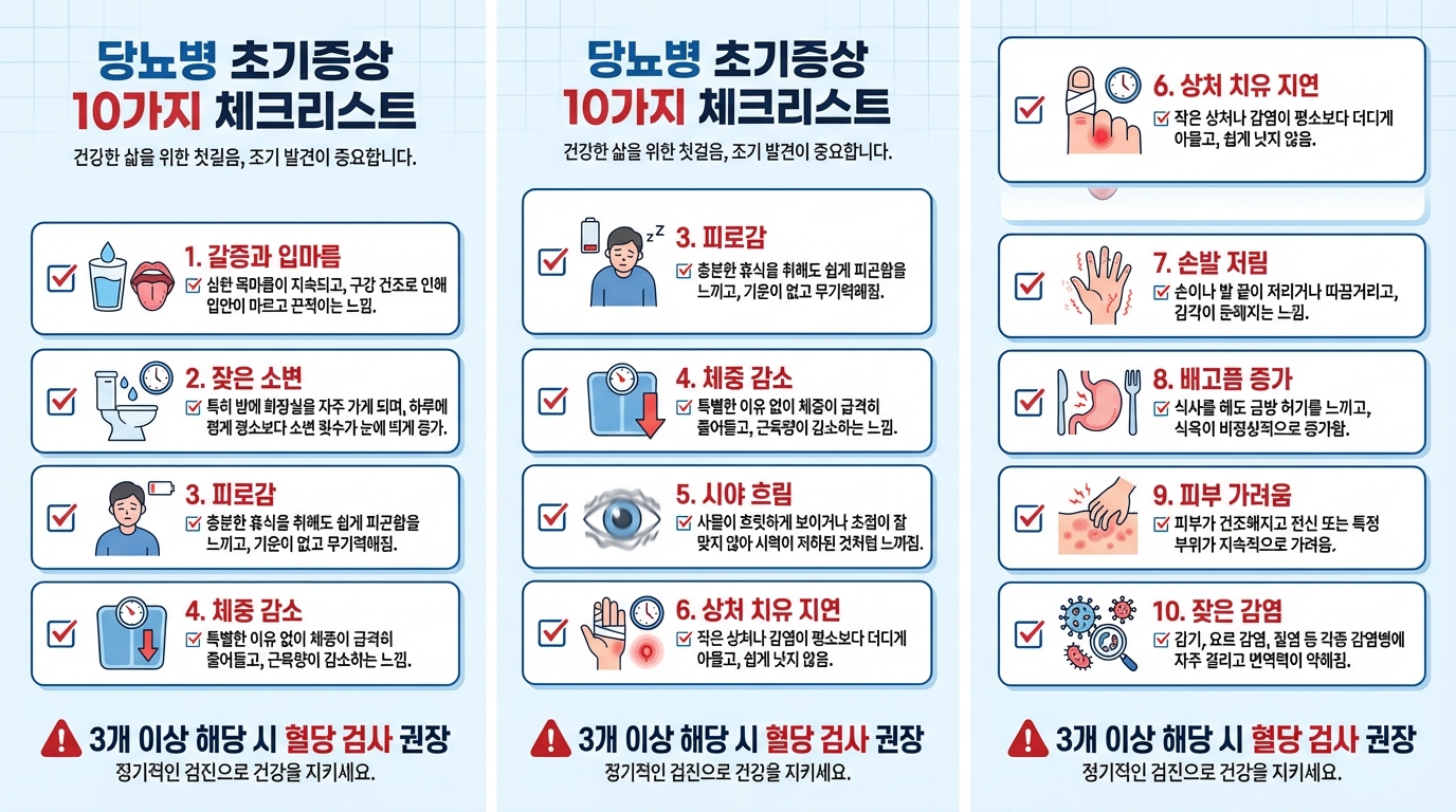 [2026년] 당뇨병 초기증상 자기진단 방법 - 전조증상 10가지 완벽 정리